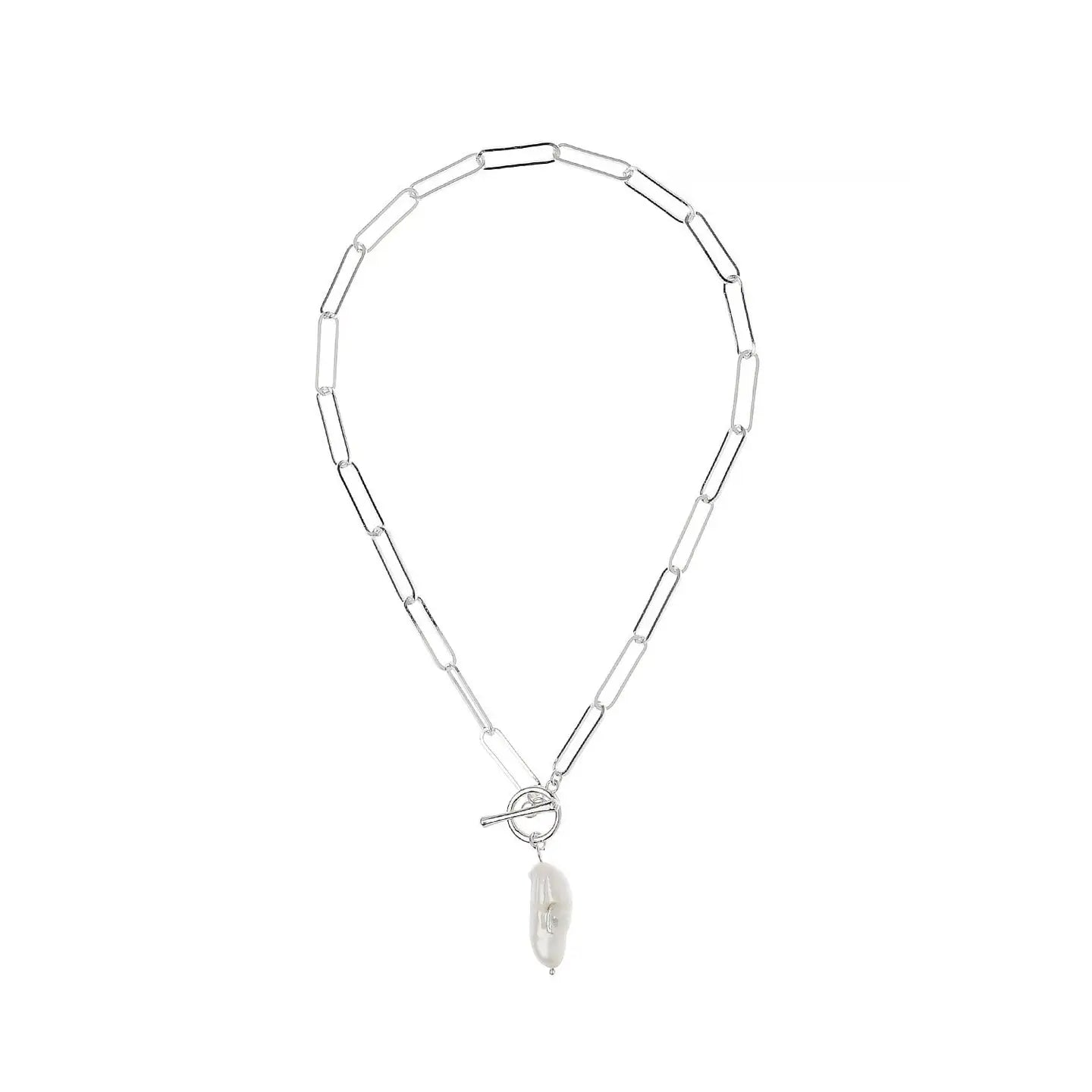 Introducing our Pearl Essence Link Chain Necklace with Freshwater Pearl Drop, a timeless and elegant accessory that exudes sophistication and grace. Crafted with a delicate link chain, this necklace features a luminous freshwater pearl drop as its focal point, adding a touch of natural beauty and refinement to any ensemble. Whether worn on its own for a classic look or layered with other necklaces for a modern twist, the Pearl Essence necklace is versatile and effortlessly chic, perfect for any occasion. Elevate your style with this exquisite piece that captures the essence of timeless elegance and understated luxury. Length: 42cm