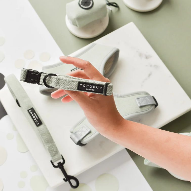 Get your dog ready for the countryside with our Sage Tweed Collar. Made from herringbone fabric in a charming sage green colour, this collar is perfect for dog walks. Plus, the safety lock feature will ensure your furry friend stays secure. A must-have for any country-loving pup!